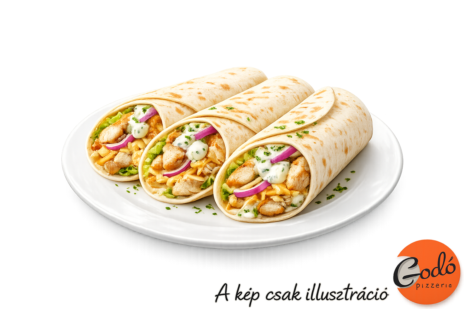 (csirkemell, trappista sajt, füstölt sajt, lilahagyma, greece öntet)